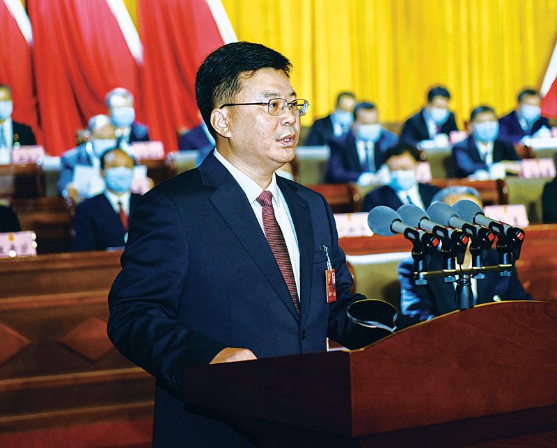 新當(dāng)選的市人民政府市長(zhǎng)柴寶良在大會(huì)上講話。? ? ? ? 本網(wǎng)記者王立群攝
